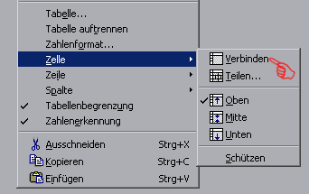 arbeiten: man kann wie gesagt Zellen verbinden, Spalten